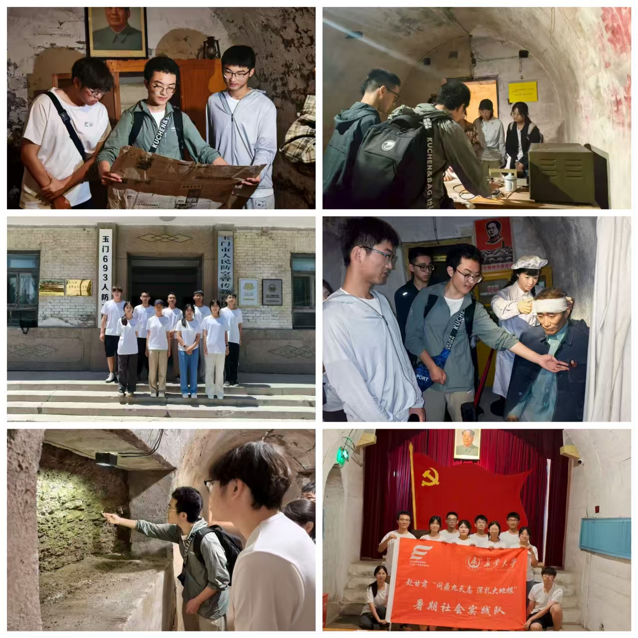 上午,实践队来到693人防工程,深入地下70米的防空洞遗址。通过实地观察工程结构、遗留设施及历史资料,队员们系统了解了该工程在特定历史时期的战略意义与建设背景。昏暗的灯光、斑驳的墙体与复杂的通道布局,直观展现了当年建设者在艰苦条件下的奋斗场景。这种沉浸式体验让队员们深刻认识到,国防工程的筑牢根基与工业建设的攻坚克难,共同孕育了“自力更生、艰苦奋斗”的精神内核,而这正是中国共产党人面对困境时始终坚守的信念力量。