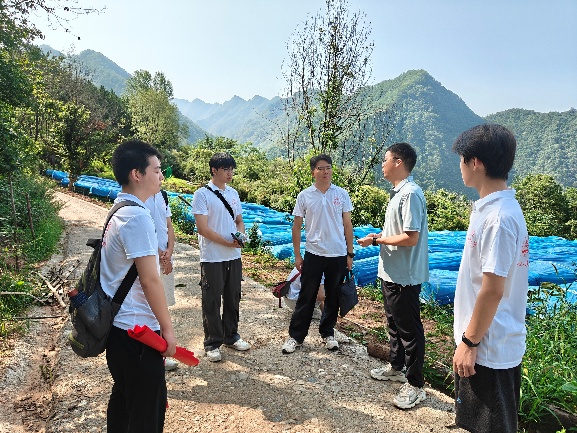 在玉皇庙镇玉皇庙村,实践队实地考察了森林生态修复项目。这一环节紧密呼应了“生态与地质融合调研”和“地质安全生态保护支撑”的目标。队员们直观了解退化林地的修复技术(如树种选择、抚育管理)、修复成效及其对涵养水源、保持水土、提升生物多样性的重要作用。认识生态修复是产业发展的前置条件和生态安全屏障,修复后的林地为发展林下种植等绿色产业提供了空间和生态保障。地质赋能组队员特别关注了修复区域的地质稳定性、水土保持措施的效果等,思考地质条件如何支撑或约束后续的生态产业开发,为形成“地质安全对生态产业的支撑边界”建议积累实地认知。