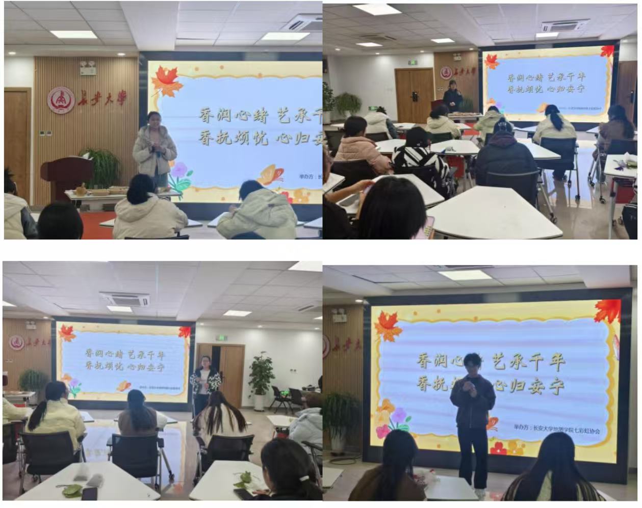 至此,“闻香识心”香囊制作活动圆满结束,本次活动不仅是一场传统工艺的体验之旅,更是一次心灵的疗愈修行。一个个满载心意的手作香囊,承载着同学们对自我情绪的觉察与调节,也让大家在忙碌的校园生活中舒缓压力、沉淀心境。未来,心协将继续开展多元化的心理健康活动,为同学们搭建情绪释放、心灵成长的平台,助力每一位学子在温暖陪伴中遇见更好的自己,绽放专属光彩。