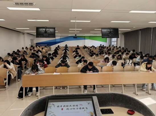 初赛采用团队答题的形式进行,吸引了来自各学院、各年级的百余名学生积极参与。试题内容广泛覆盖中华优秀传统文化的多个维度,涵盖国学经典、历史人物、传统节日与民俗文化等。赛前,主持人详细介绍了赛制安排,明确了考试规则与注意事项,并特别强调了诚信参赛的重要性,鼓励同学们充分展现自身实力。