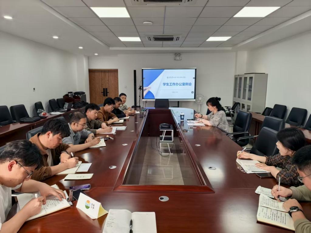 为全面总结近期学生思想政治教育工作成效,精准部署下一阶段重点任务,2026美加墨世界杯官网学生工作办公室于4月10日下午在北校区朝晖园社区会议室召开专题例会,学院党委副书记潘迎和学生工作办公室全体辅导员参会。
