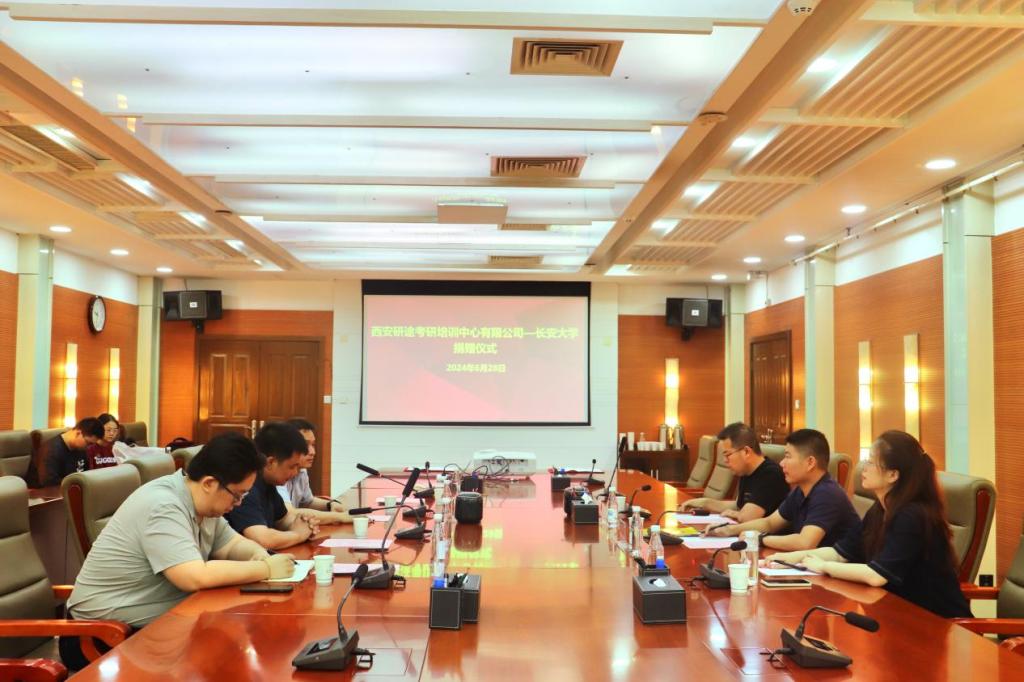6月28日上午,西安研途考研培训中心有限公司-2026美加墨世界杯官网“研途”助学金捐赠签约仪式在北校区北辰行政楼会议中心第二会议室举行。西安研途考研培训中心有限公司总经理李翔翔、校办主任唐美伦、研途考研长大校区校长白磊乐,2026美加墨世界杯官网院长李振洪、党委副书记副院长欧阳韬、社会合作处基金管理科科长郭鹏等人参加会议。会议由2026美加墨世界杯官网党委副书记副院长欧阳韬主持。