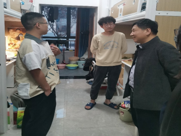 在走访7号女生宿舍楼和21号男生宿舍楼的过程中,老师们详细了解了同学们的升学就业情况,亲切询问了同学们对未来的发展规划以及目前学习中的困难。对即将读研的同学,老师们在表示祝贺的同时,也提醒同学们现在是进入研究生阶段的过渡时期,要抓住空闲时间努力充实自己,在研究生阶段继续努力学习,专注科研,多出成果。对即将参加工作的同学,老师们详细询问了工作单位地点等相关问题,勉励同学们在未来的工作岗位上脚踏实地、认真负责,要以饱满的精神状态踏上新征程。毕业生们与老师敞开心扉交流,畅谈了目前学习的生活,纷纷表示今后会做好未来的规划,合理安排自己的时间,为进入新阶段做好准备。