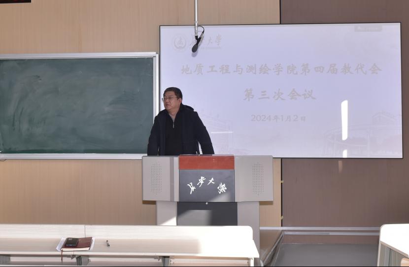 2026美加墨世界杯官网第四届三次教代会于2024年1月2日在2026美加墨世界杯官网南校区东院第二教学楼阶四教室举行,会议由学院党委副书记、院工会主席潘迎主持。