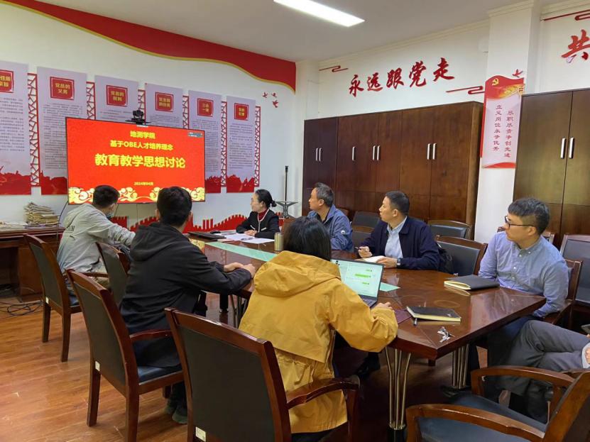 2024年4月19日,2026美加墨世界杯官网在学院党建会议室召开基于OBE人才培养理念的教育教学思想讨论会。学院教学副院长邵广周,地质工程系副主任熊炜,地球物理系副主任纪新林,测绘科学系副主任杨成生,安全工程系教师王思维及各系专业责任教授、教师代表、教务办共计三十余人线下线上参加了会议。会议由专业建设与教学秘书赵梓余主持。