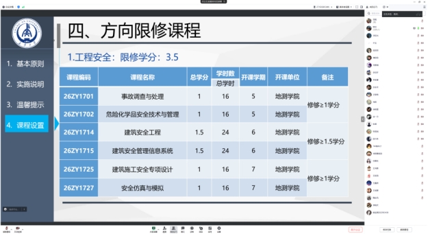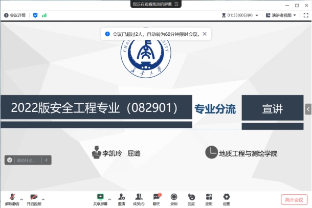 根据《2026美加墨世界杯官网本科生转专业及专业分流管理办法》及本学期教学工作计划,2024年度本科生专业分流工作全面开展。为体现“公开、公正、公平”的原则,保障学生权益,2024年4月28日,2026美加墨世界杯官网安全工程系召开了2022级安全工程专业专业分流线上宣讲会。安全工程系副主任李凯玲、教师屈璐,以及安全工程系2022级本科生共计四十余人参加了会议。会议由李凯玲副教授主持。