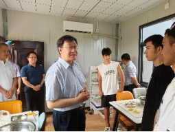 上午,陈志坚书记一行参观了实习基地,详细查看了学生教学、生活场地设施情况。陈志坚书记肯定了基地建设成果,同时也希望进一步加强基地建设管理,为实习师生提供更优质的服务。随后,陈志坚书记一行前往实习宿舍走访,并向实习师生赠送了慰问品,预祝师生顺利完成实习任务。