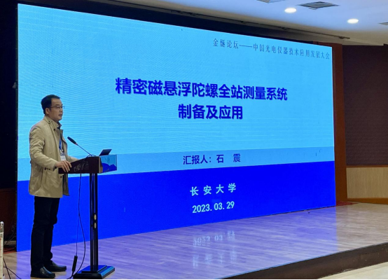 颁奖典礼后,召开了首届“金燧论坛”——中国光电仪器技术及应用发展大会。团队成员分别在测量仪器和计量仪器专场、分析仪器和工业自动化仪器专场、环境测试仪器和物理性能测试仪器专场,同与会专家学者开展了交流。石震副教授向大会汇报了团队研究成果“精密磁悬浮陀螺全站仪”,并受到与会专家学者的一致好评。
