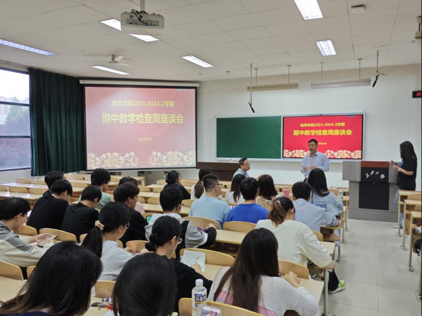 首先,副院长邵广周介绍期中教学检查座谈会背景,教育教学审核评估与质量保障的重要意义,并提出学生需志存高远、珍惜在校学习机会,鼓励学生畅所欲言。随后,学院分地质工程系、地球物理系、测绘科学系、安全工程系分别召开在校生座谈会。