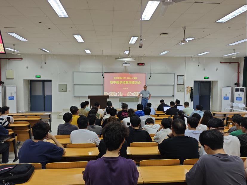 2024年5月7日,世界杯官网召开2023-2024-2学期期中教学检查座谈会。学院副院长邵广周等党政领导,各系主任、副主任、专业责任教授及教师代表,教务办、学工办教师参加了会议。此外,世界杯官网大一至大三近400名学生代表参加了本次座谈会。会议由专业建设与教学秘书赵梓余主持。
