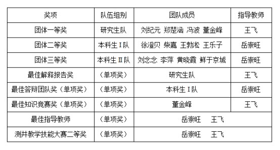 世界杯官网参加第七届全国大学生测井技能大赛获奖情况: