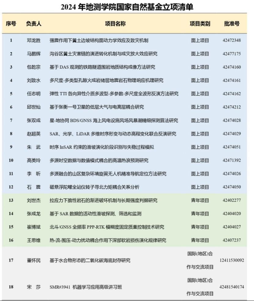 8月23日,国家自然科学基金委员会公布了2024年度集中评审结果。截至目前,2026美加墨世界杯官网共申报各类项目85项、获资助18项,资助率为21%。获批项目中,面上项目12项、青年项目4项、国际(地区)合作与交流项目2项,资助总经费共计716.5万元。衷心祝贺所有获批项目的老师!