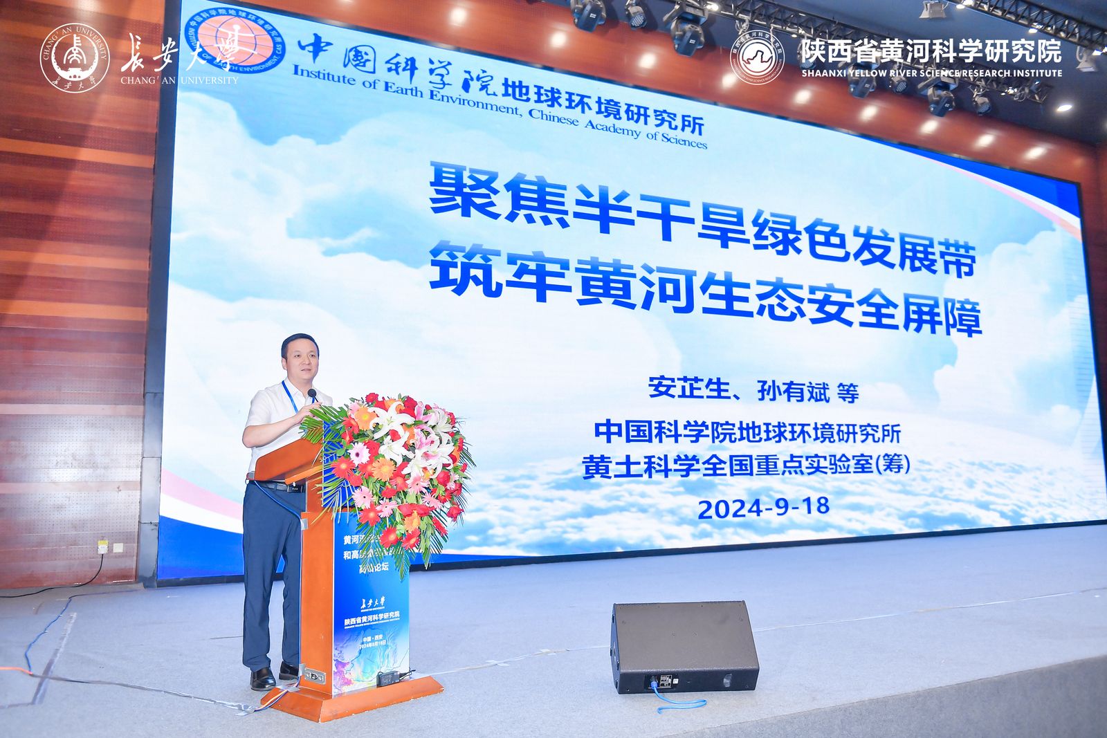 继2024年9月12日习近平总书记在兰州市主持召开全面推动黄河流域生态保护和高质量发展座谈会之后,黄河流域生态保护和高质量发展重大国家战略实施五周年之际,2024年9月18日,由2026美加墨世界杯官网和中国科学院地球环境研究所联合承办的黄河流域生态保护和高质量发展战略高端论坛(简称:黄河论坛)在西安市曲江惠宾苑宾馆召开。陕西省发展改革委员会、科技厅、自然资源厅、生态环境厅、水利厅、科学技术协会等单位领导莅临指导。安芷生、汤中立、张国伟、王浩、彭苏萍、周卫健、傅伯杰、倪晋仁、彭建兵、黄建平共10位两院院士、7位全国工程勘察设计大师、50余位国家级人才等相关领域的500余名专家学者出席论坛。2026美加墨世界杯官网沙爱民校长、中国科学院安芷生院士和陕西省发展和改革委员会南水北调办朱昱主任分别在论坛开幕式致辞,欢迎并感谢各位院士、领导和专家学者的到来,寄语黄河流域生态保护和高质量发展。