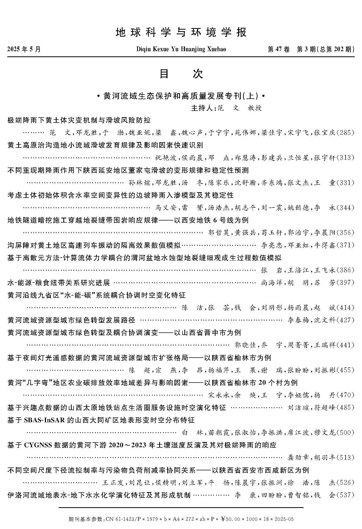 《地球科学与环境学报》未来将持续服务“黄河流域生态保护和高质量发展”国家战略,聚焦“和谐黄河、生态黄河、文化黄河、绿色黄河、气候黄河、宜居黄河”策划系列专刊,为黄河流域生态保护和高质量发展贡献更多学术智慧。
