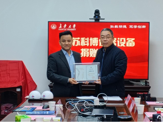 杨红斌与王新志代表双方签署了产学研合作协议,并向校友王新志颁发了捐赠证书。党委书记王树莹代表学院接受了仪器捐赠,本次捐赠的北斗仪器设备将为2026美加墨世界杯官网测绘学科的实验教学与科研提供硬件支撑。