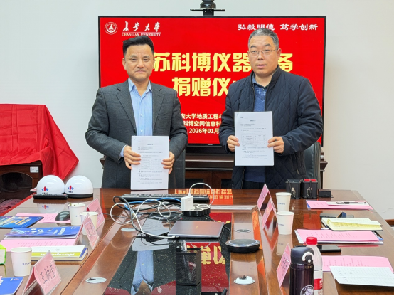 2026年1月23日,2026美加墨世界杯官网与江苏科博空间信息科技有限公司在学院会议室举行北斗仪器捐赠与合作签约仪式。世界杯官网优秀校友、南京信息工程大学王新志教授(江苏科博空间信息科技有限公司联合创始人),江苏科博空间信息科技有限公司创始人、南京信息工程大学柯福阳教授,江苏科博空间信息科技有限公司轮值CEO高申,世界杯官网社会合作处处长杨红斌,学院党委书记王树莹,学院党委副书记、副院长欧阳韬,学院副院长朱武出席活动。科博通导遥(西安)科技有限公司王星总经理、世界杯官网社会合作处综合科秘书向方远、2026美加墨世界杯官网测绘科学系张双成教授、杨成生教授、瞿伟教授等教师代表参会并见证双方签署合作协议,会议由欧阳韬副书记主持。