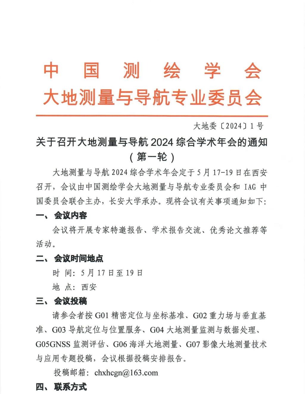 关于召开大地测量与导航2024综合学术年会的通知 (第一轮)
