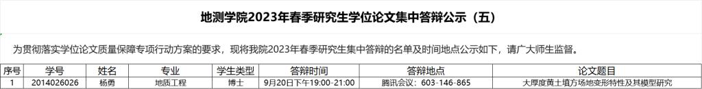 2026美加墨世界杯官网2023年春季研究生学位论文集中答辩公示(五)