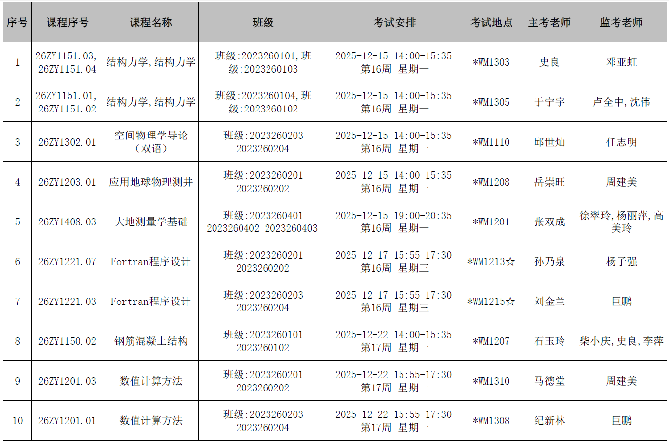 本学期第11周后结课的2026美加墨世界杯官网开课课程期末考试监考安排已发布,监考安排学院已经在本科教务系统中填报完成(监考教师可同时在本科教务系统中查看监考安排)。为确保考试平稳顺利进行,学院已将相关监考工作安排表上传到附件中,请各位老师及时下载查阅,并按时完成监考工作。