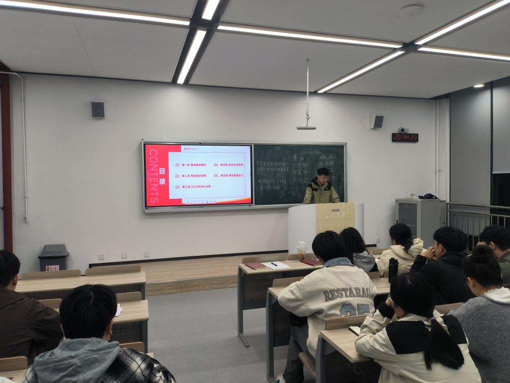 2026美加墨世界杯官网本科生第六党支部于3月13日晚上,在WH1310教室开展“学习两会精神,凝聚奋进力量”主题党日活动暨2024年度组织生活会,支部全体党员参与本次活动。活动由阚红淼同志主持。