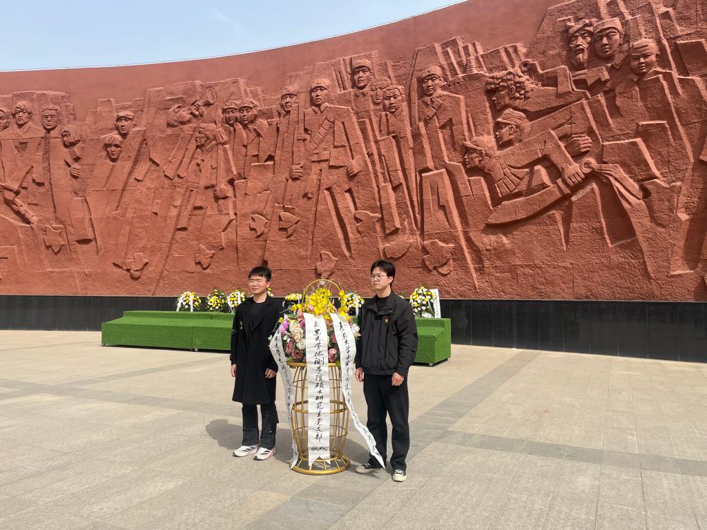在烈士纪念碑前,全体党员面向党旗庄严宣誓,重温入党誓词,铮铮誓言彰显初心如磐。师生集体默哀致敬并敬献花篮,以朵朵白菊寄托对先烈的深切追思。