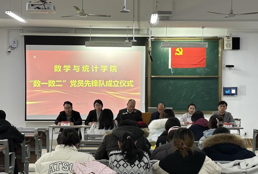 12月4日下午,数学与统计学院在增信楼3516教室举办“数一数二”党员先锋队成立仪式。数学与统计学院党政领导及学生党员参加本次大会,党委副书记王高升主持了仪式。