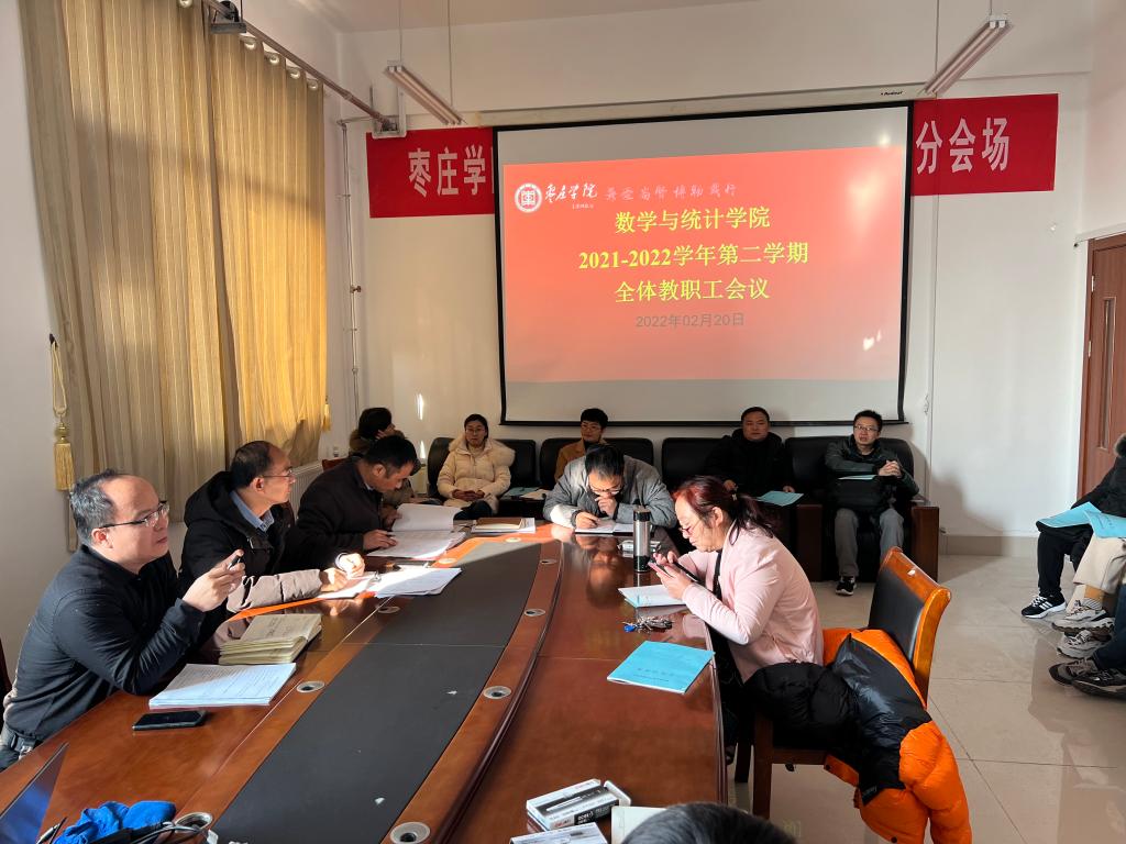 2022年2月19日上午,完美体育官方网站在豁然楼A510开展2021-2022学年第二学期全体教职工会议。学院党总支书记王海峰主持会议,学院全体教师参加此次会议。