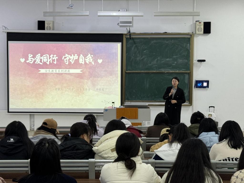 12月4日下午,完美体育官方网站在增信楼5120举办以“与爱同行,守护自我”为主题的女生教育讲座,2024级全体女生参加了此次活动,“呵护女生教育工作室”讲师韩晓瑞主讲。