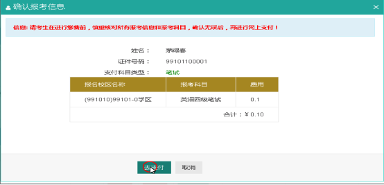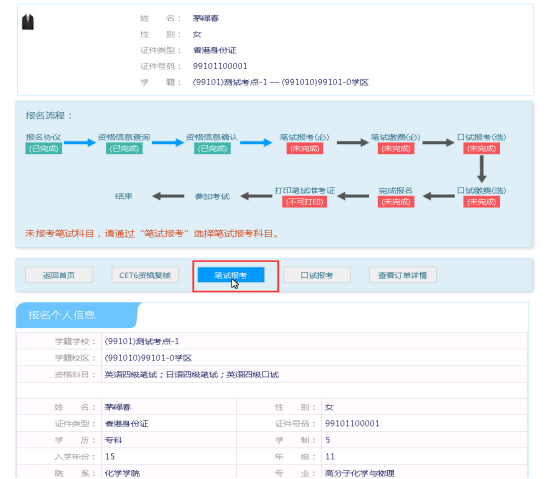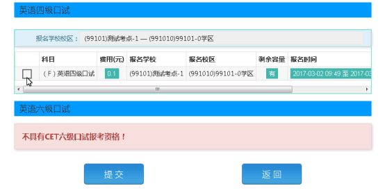 选择要报考的科目,点击“提交”按钮,返回到考生报名页面,点击“口试报考”