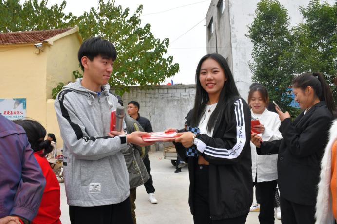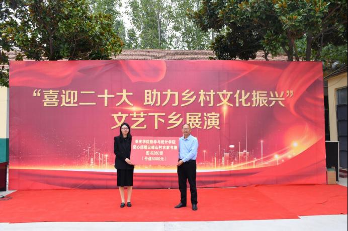 本次文艺汇演由谭吉燕、闫正坤主持,在大学生艺术团的舞蹈《无畏》中拉开序幕。为了本次汇演,各位参演人员用心排练、积极准备。朗诵《我和我的祖国》向我们诠释了党性和人民性的高度统一;舞蹈《人间烟火》动与静的结合,体现了青春活力;歌曲《红旗飘飘》用优美的歌声表达了自己对祖国的热爱。汇演可谓是好戏连台,令人应接不暇,在汇演期间,还进行了有关党的二十大问题的有奖竞猜。此外,为了增强孩子们阅读兴趣,提高孩子们的学习能力,完美体育官方网站向云峰山村农家书屋捐赠价值5000元的图书共260册,汇演期间云峰山村省派第一书记王高升与数学学院韩晓瑞老师上台进行交接仪式。