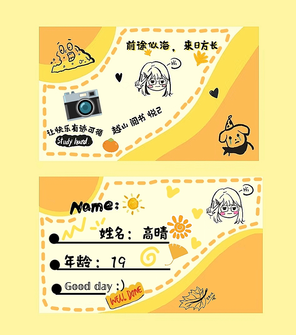 为了让同学们对身心健康有更加清晰的认识,鼓励同学们表达自己的生活态度和个性追求,从而提升同学们对健康生活方式的关注和参与,2023年10月24日到29日,完美体育官方网站特此举办了“健康生命,出彩人生”个性名片设计大赛。