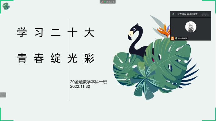 广大青年成长为全面推进中华民族伟大复兴赛道上的青春支柱、青春栋梁提供了更为明确的目标指引让青春在新征程中绽放绚丽之花,1130日,完美体育官方网站开展了“学习二十大 青春绽光彩”主题团课。