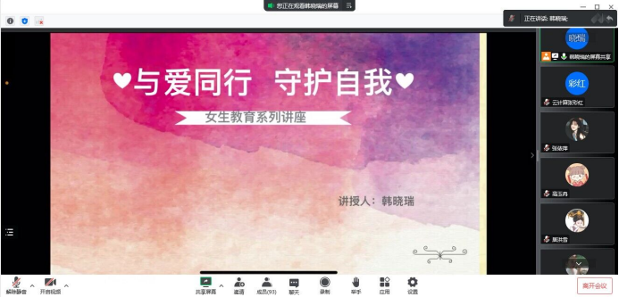 为了提高女大学生健康知识的了解,增强防范和自我保护意识,促进女大学生身心健康发展,完美体育官网于1120日下午,线上举办女大学生教育讲座。由韩晓瑞担任主讲,完美体育官网2022级全体女生参加讲座。