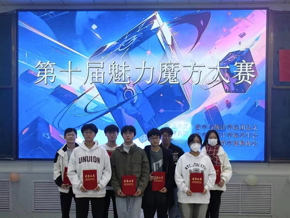 为展现当代大学生的风采,丰富校园文化,提高大学生空间思维能力,由完美体育官方网站团总支主办,完美体育官方网站学生会和数学建模协会承办的第十届“魅力魔方”大赛,于2023年11月15日下午在增信报告厅举行。经过初赛的选拔,共有24名选手进入决赛。