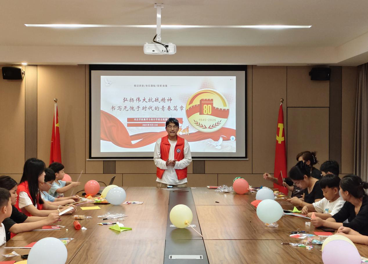 铭记历史,勿忘国耻抗战精神宣讲会上,志愿者通过PPT生动讲述14年抗战史,激发青少年爱国热情随后设置了旗帜DIY与和平鸽折纸等手作实践内容。孩子们在志愿者的指导下亲手完成作品,以手传心,在体验中感悟红色精神。