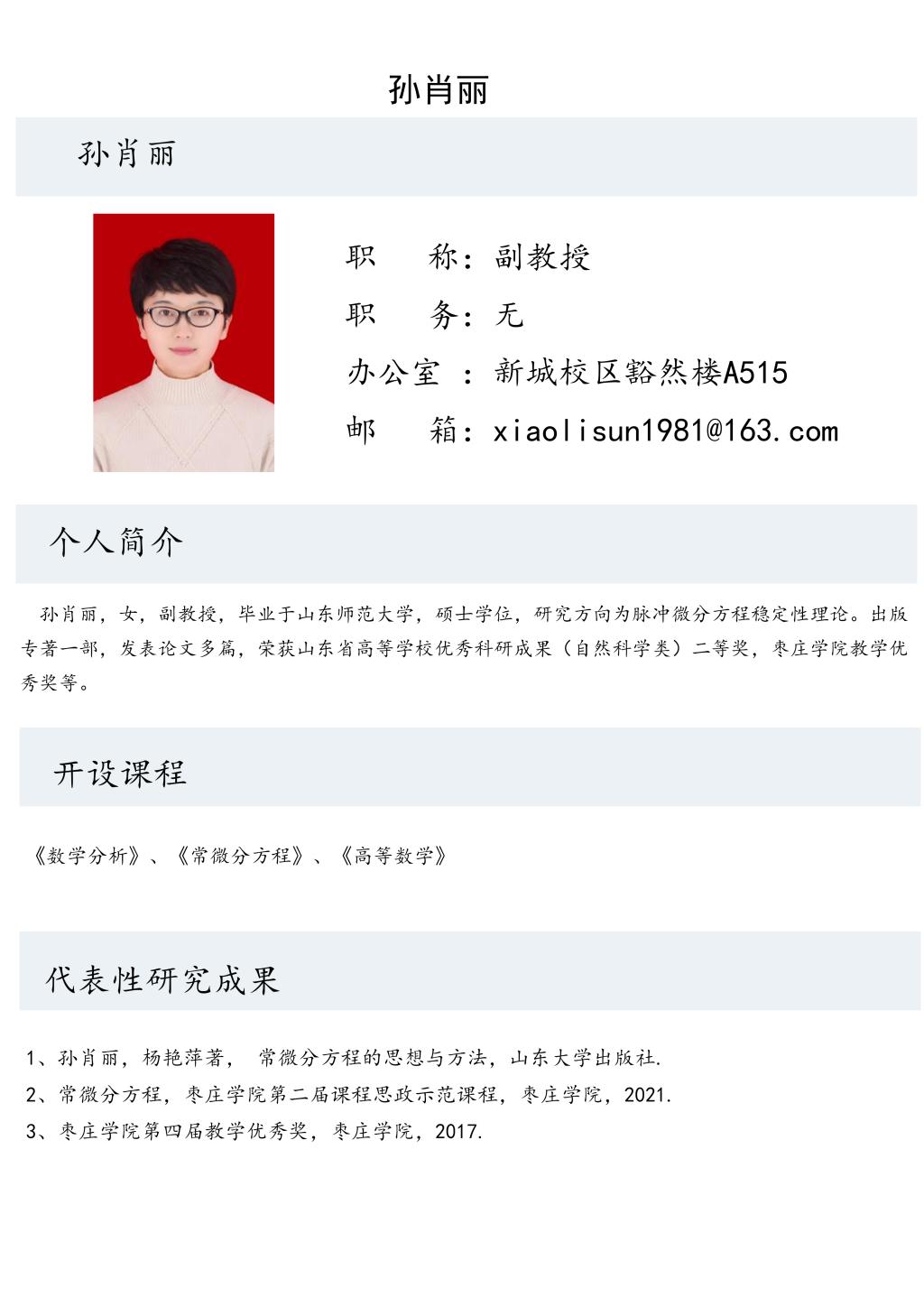 孙肖丽老师个人简介