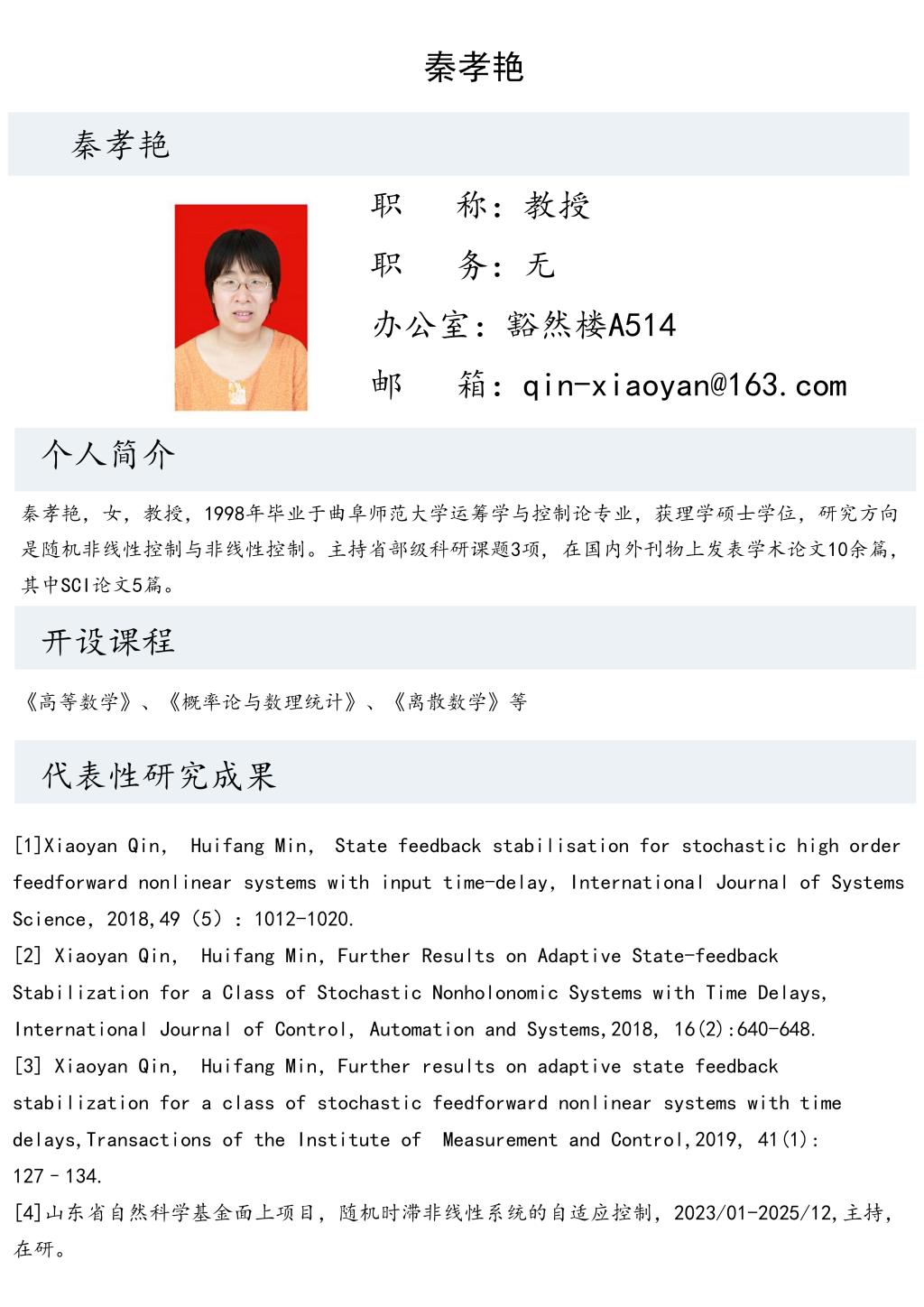 秦孝艳老师个人简介