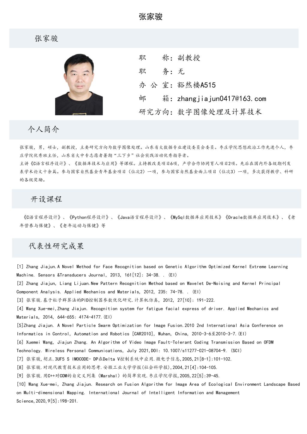 张家骏老师个人简历