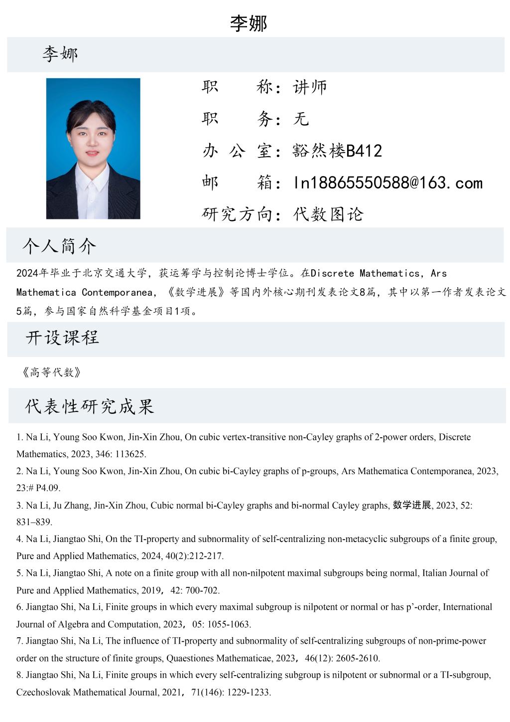 李娜老师个人简介
